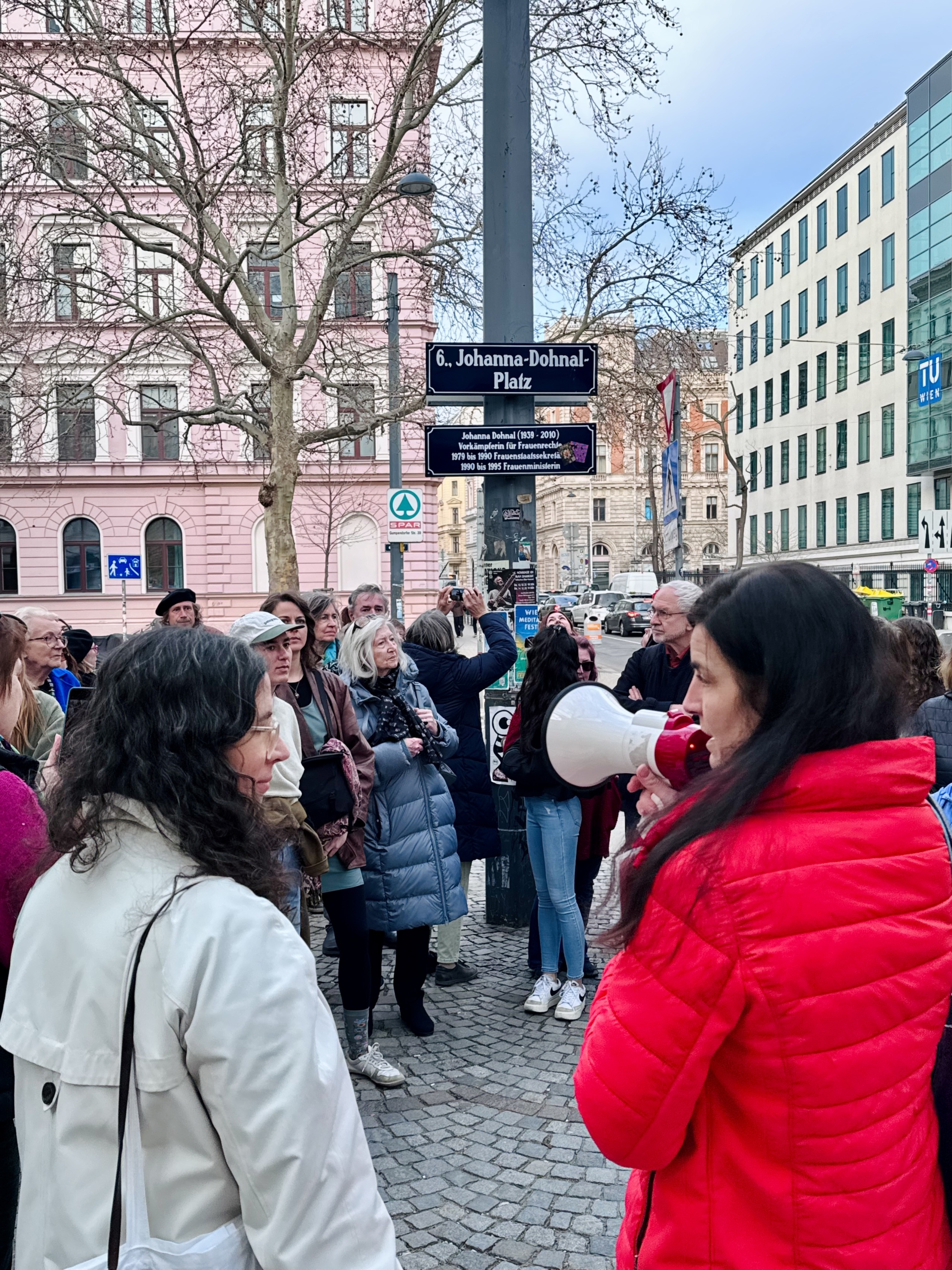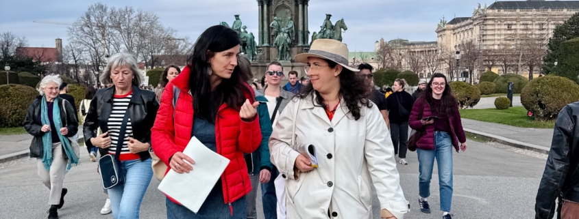 Julia Girardi-Hoog und unsere City Organizerin Cornelia Dlabaja spazierten mit uns, teilten ihr Wissen über Pionierinnen für Frauenwahlrecht, Bildungschancen, Forschung und Arbeitnehmer:innenrechte und erzählten Geschichten von Salonnièren bis Straßennamen. Sie machten Frauen in der Planung, Forschung und Kunst sichtbar, die Wien zu dem machen, was es ist.